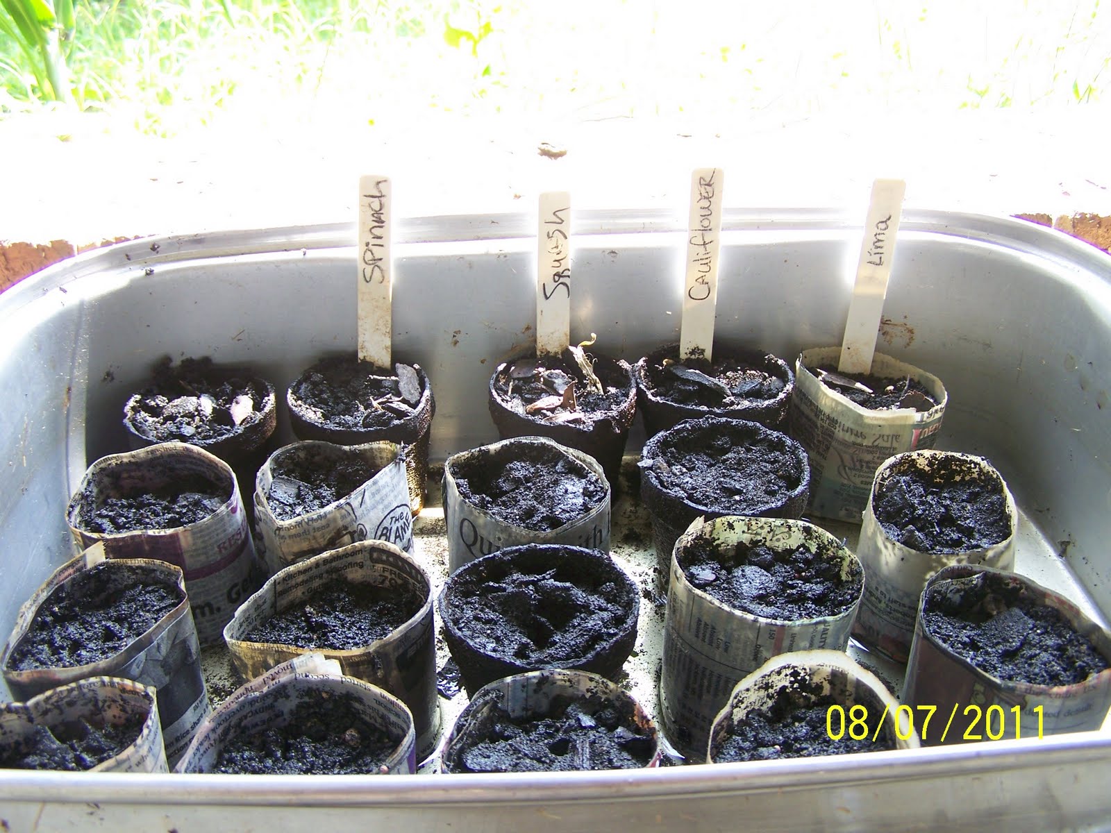 We finally got to put our newspaper pots to the test. It was time to get seeds started for spinach, winter squash, cauliflower, limas....